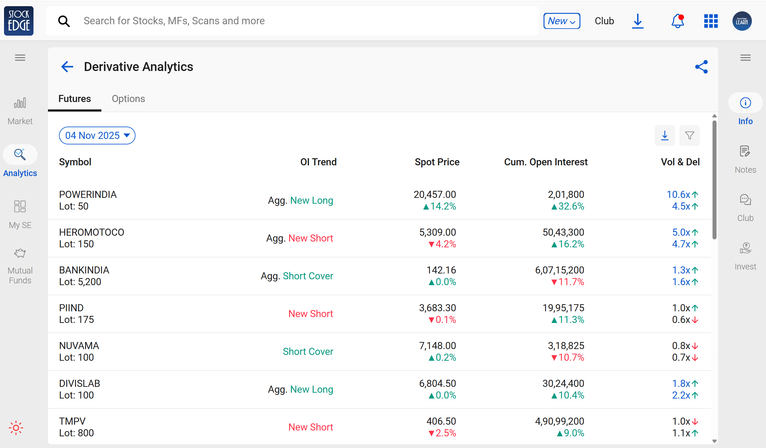 Table 2.3 StockEdge screenshot of the F&O zone