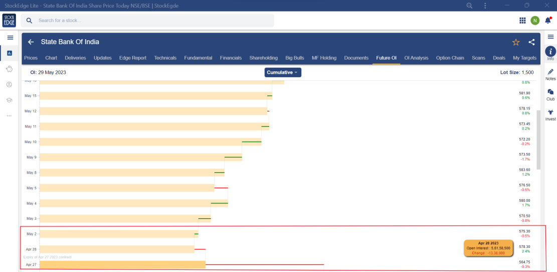 Figure 2.43 OI of State Bank of India for the month of May 2023