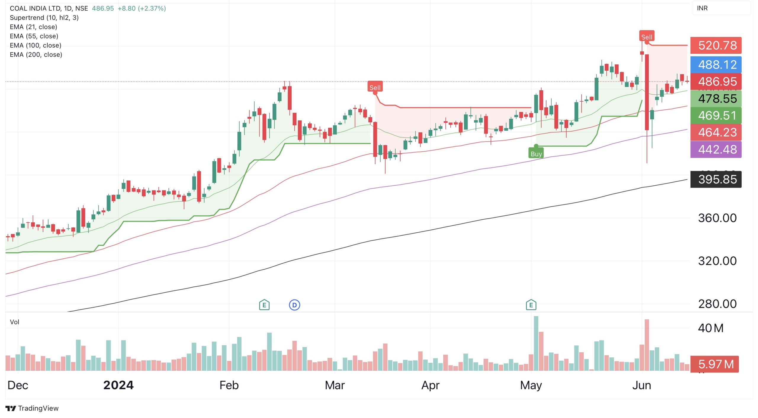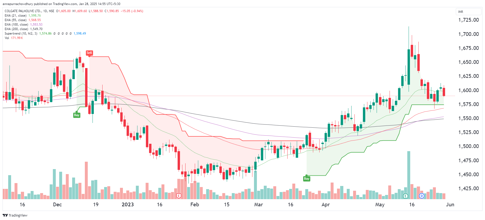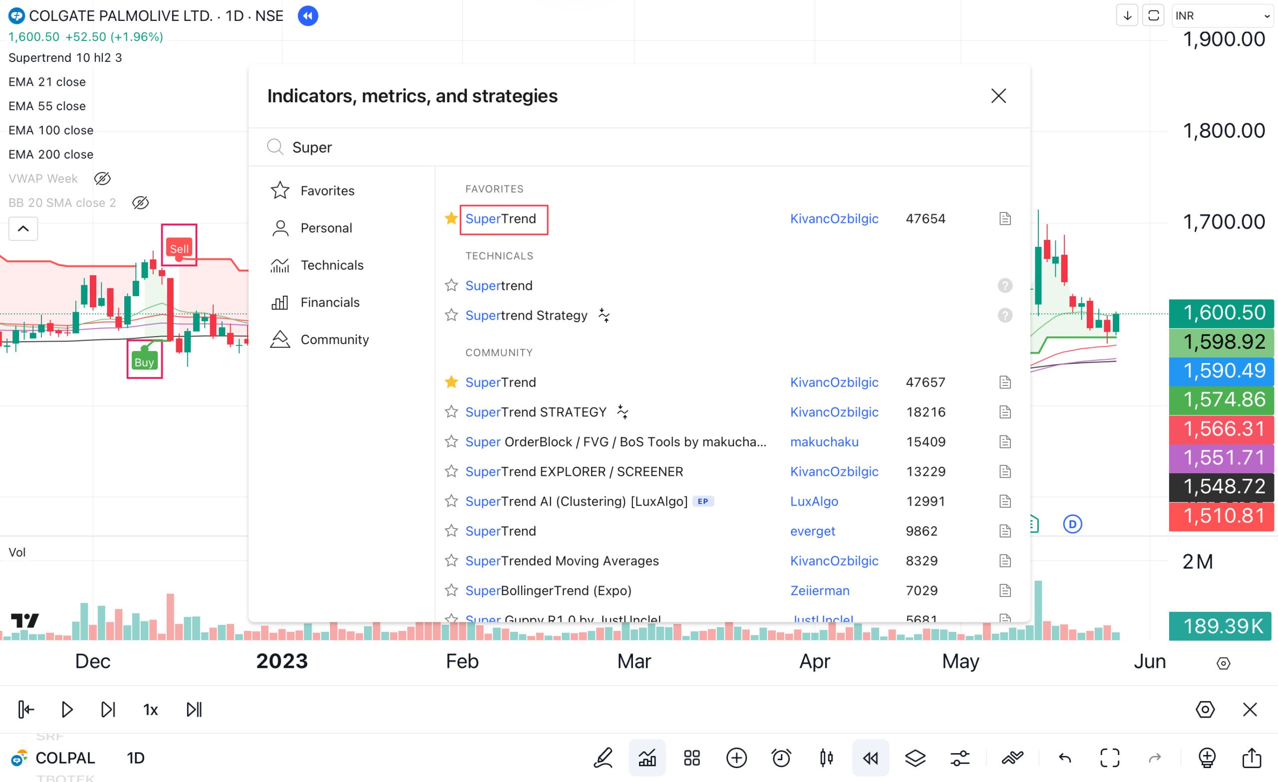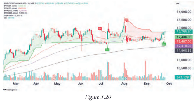 Figure 3.13 Adding the supertrend indicator to the chart