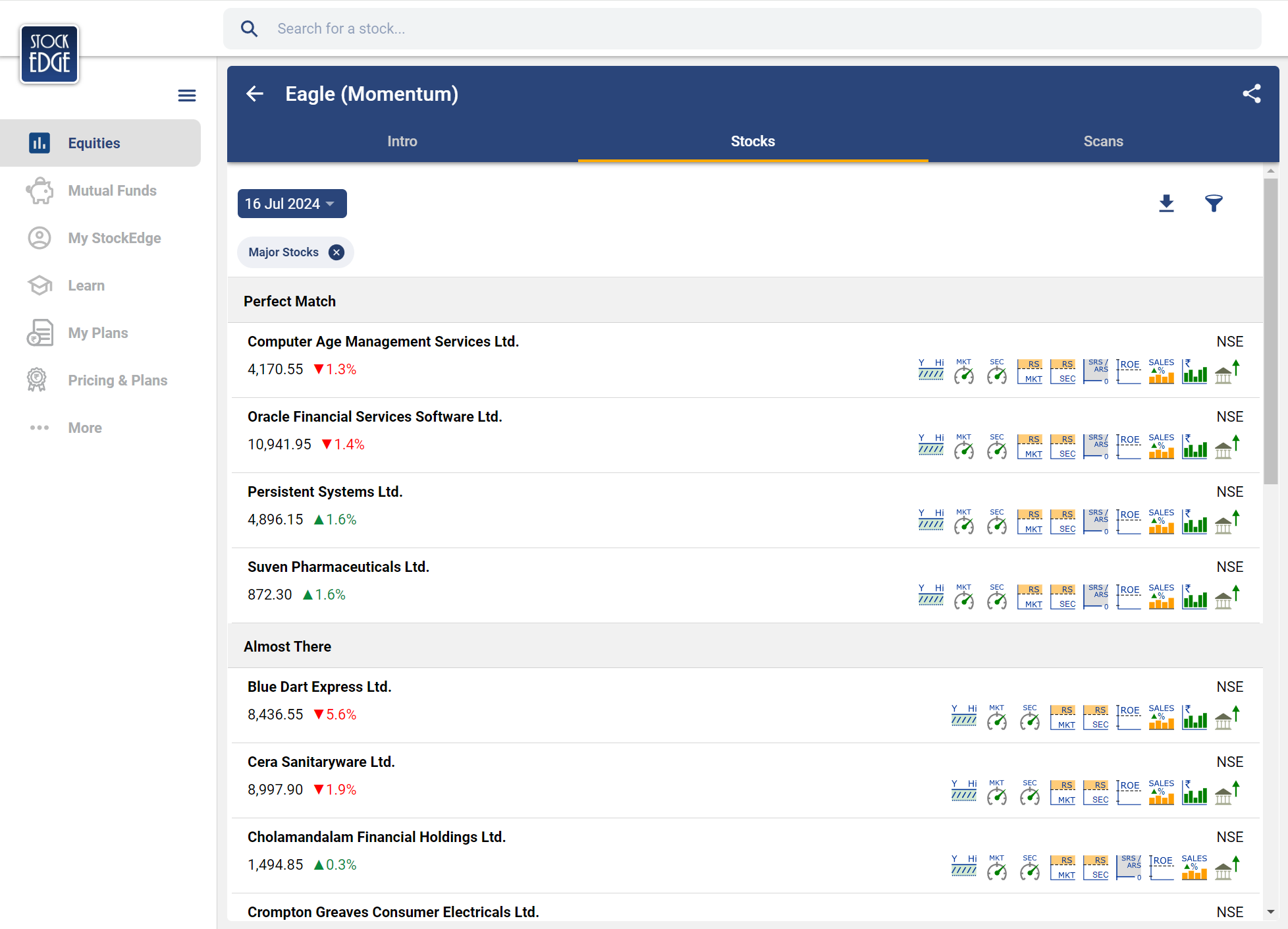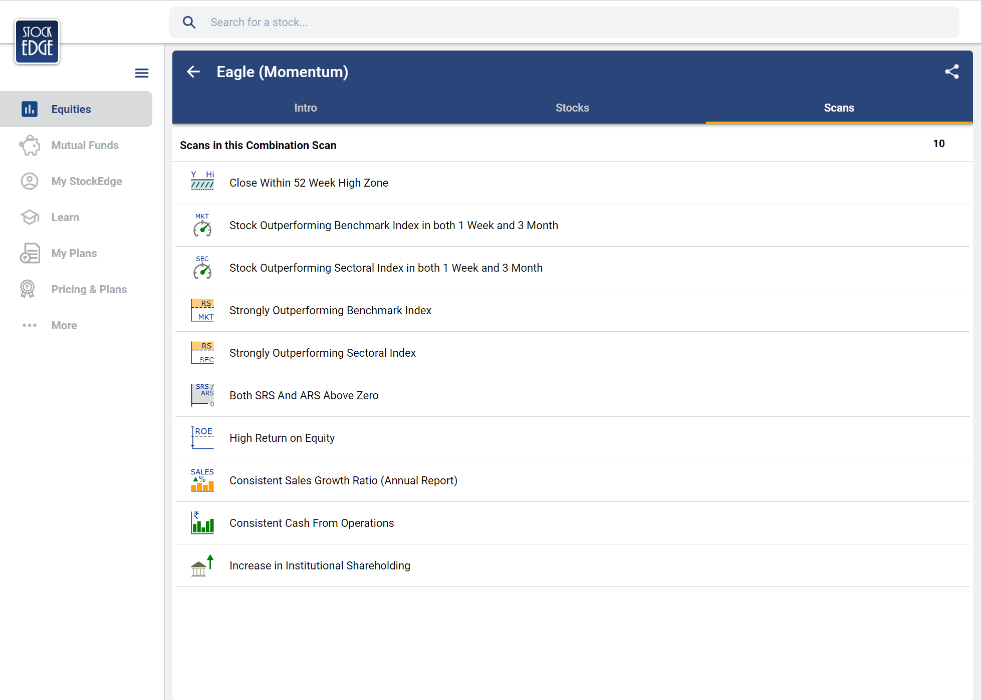 Table 4.18 Eagle scan to identify stocks that are in momentum