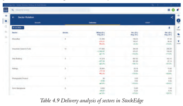 Table 4.9 Delivery analysis of sectors in StockEdge