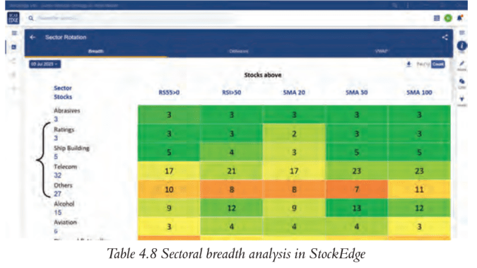 Table 4.8 Sectoral breadth analysis in StockEdge