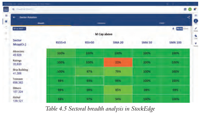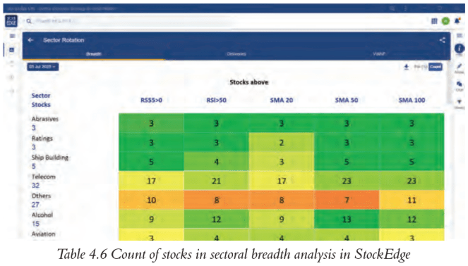 Table 4.5 Sectoral breadth analysis in StockEdge