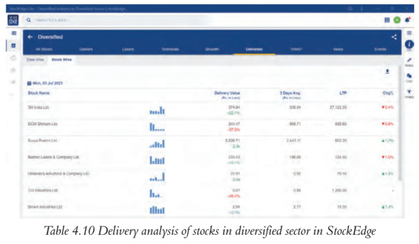 Table 4.10 Delivery analysis of stocks in diversified sector in StockEdge