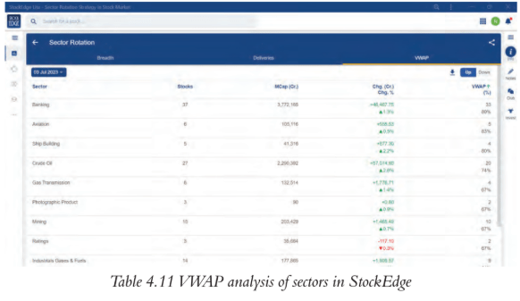 Table 4.11 VWAP analysis of sectors in StockEdge