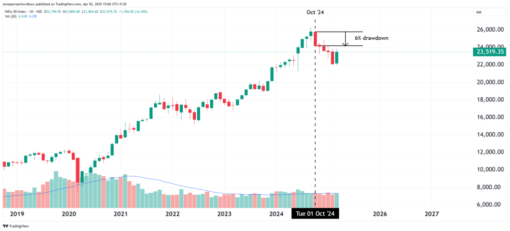 Figure 5.56 Daily chart of Nifty50 and Emerging Markets Index