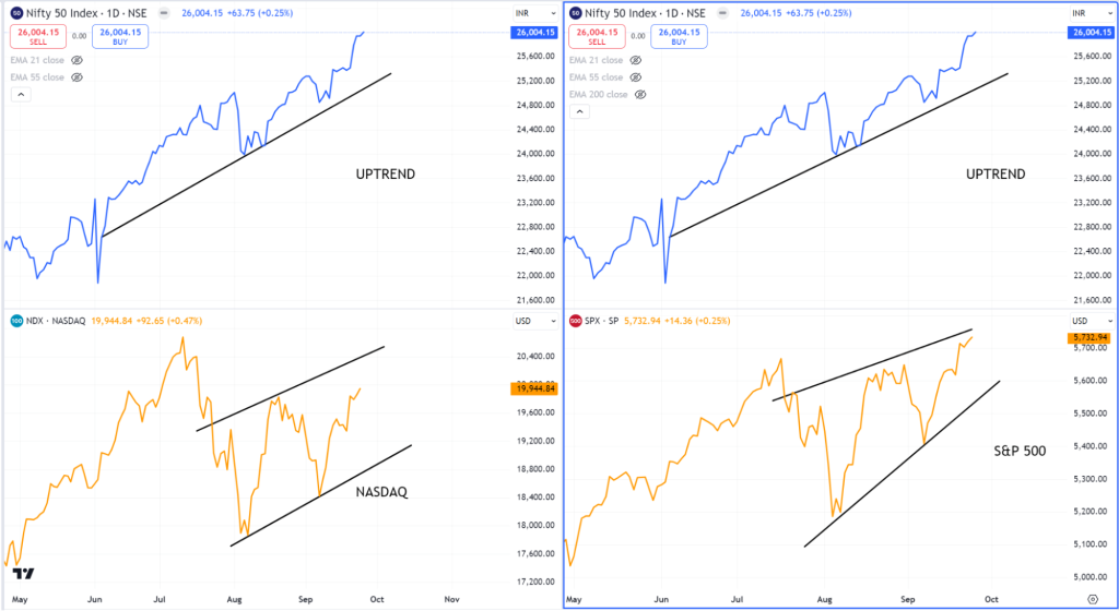 Figure 5.55 Daily chart of Nifty50, NASDAQ and S&P 500