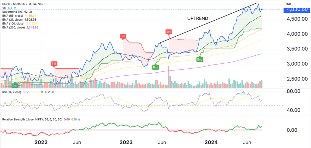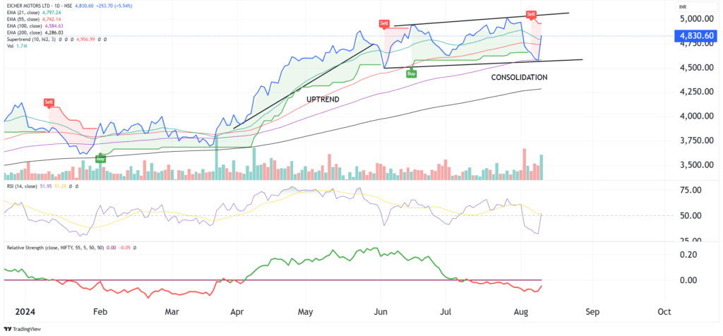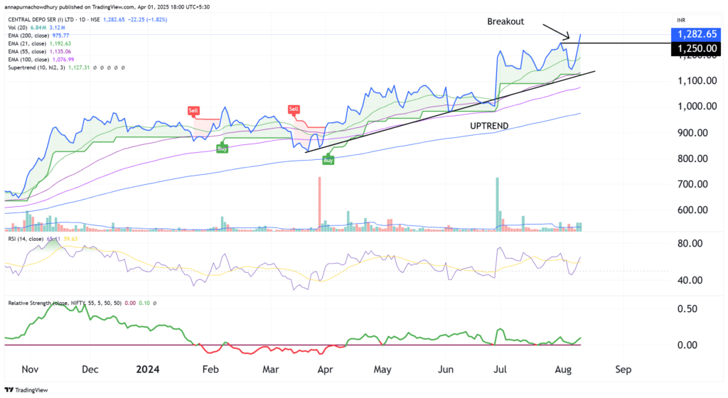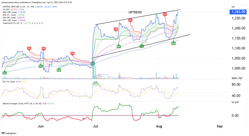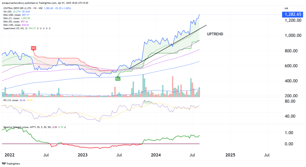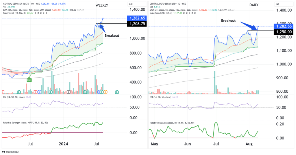 Figure 5.28 Weekly and daily chart of CDSL in a multi-time-frame layout