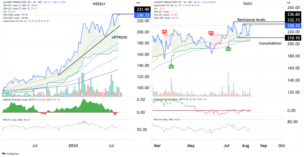 Figure 5.29 Weekly and daily chart of Gujarat Pipapov Port Ltd(GPPL)