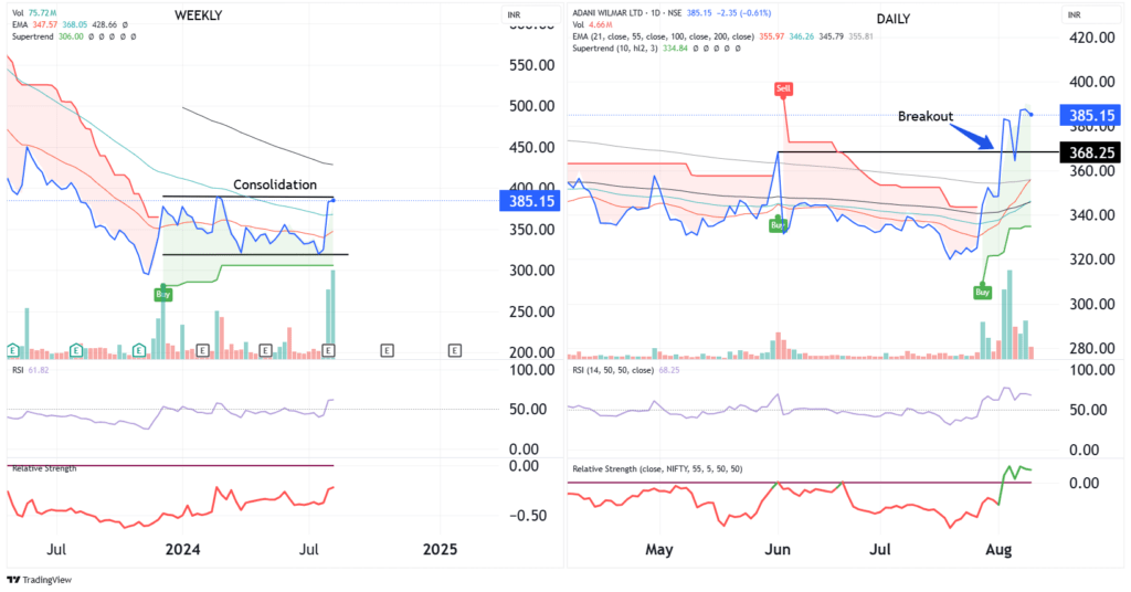 Figure 5.30 Weekly and daily chart of Adani Wilmar Ltd(AWL)