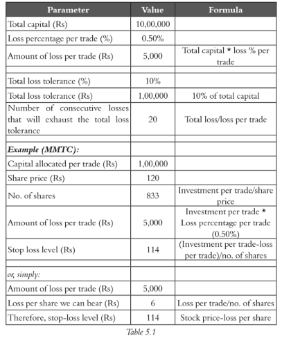 Table 5.1 (Stop loss and Capital Allocation- Capital based Stop Loss)